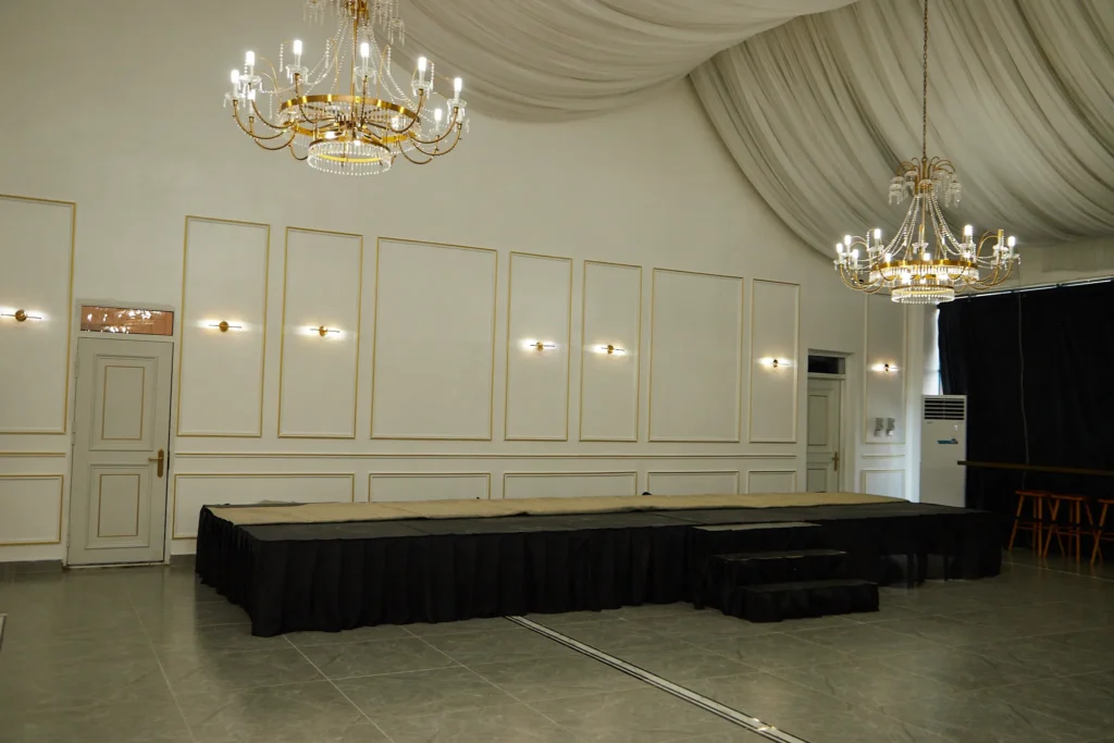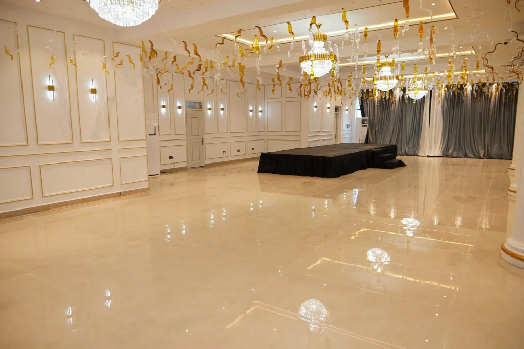 The Grand Ballroom and Dance Floor at NJS Royale provide an elegant and spacious setting for any celebration, offering a perfect blend of style and functionality. The expansive layout ensures smooth movement and comfort for all guests, whether during a lively dance or a formal gathering. Designed with attention to detail, the ballroom features ambient lighting and a well-maintained dance floor that enhances every moment. With attentive staff and a thoughtfully arranged setup, guests can fully enjoy the event while the hosts take pride in a seamless and memorable experience.